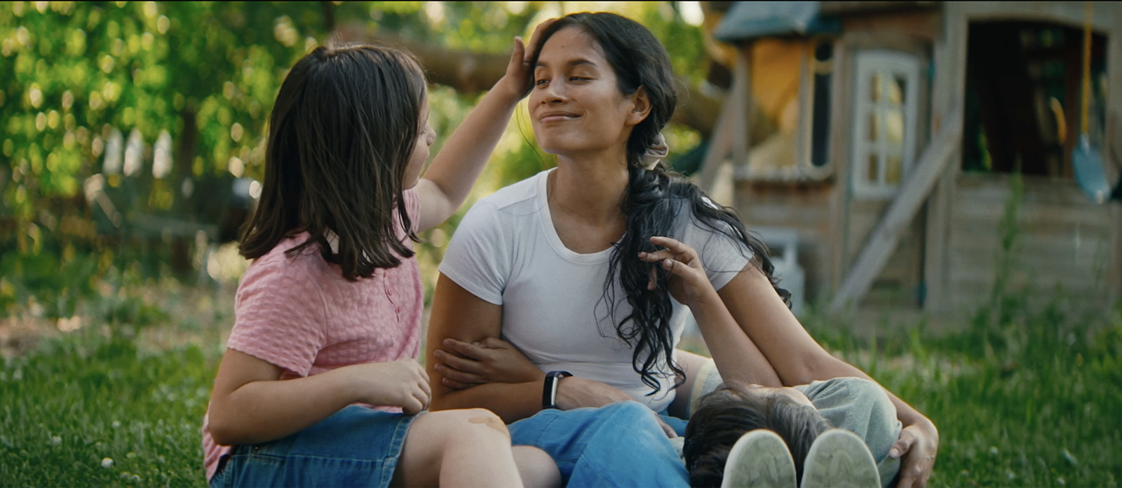 A film still shows a single mother caring for her much-loved family with the help of safe at-home medication.