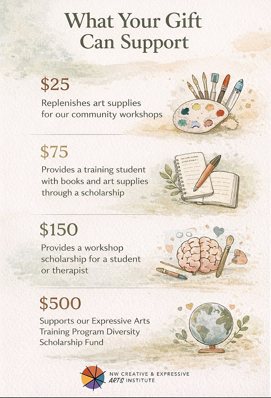 Northwest Creative and Expressive Arts InstituteYour support helps us expand access to creativity, healing, and connection through Expressive Arts.