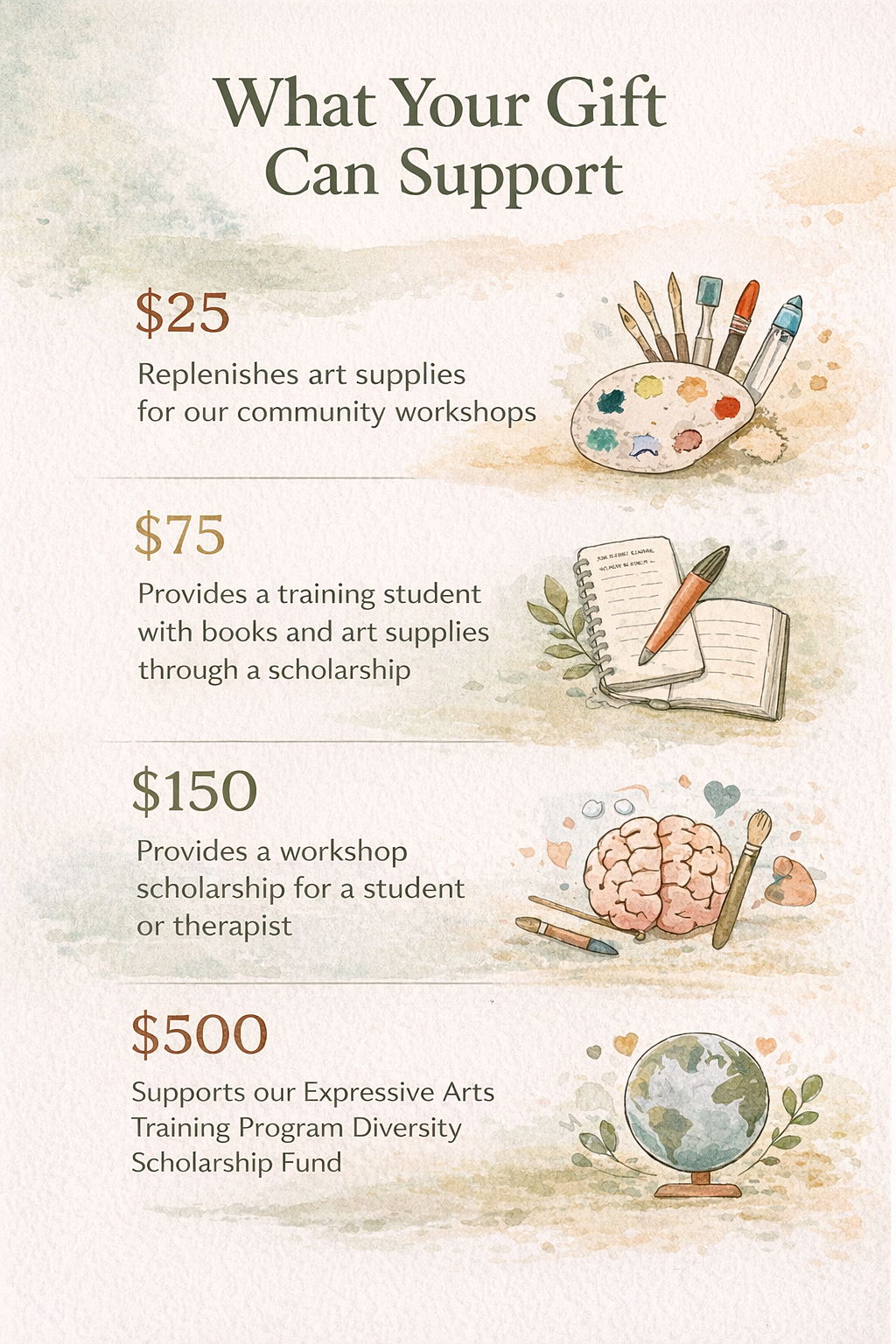Expand Access to Expressive Arts – Help fund scholarships and make creative healing accessible to all.