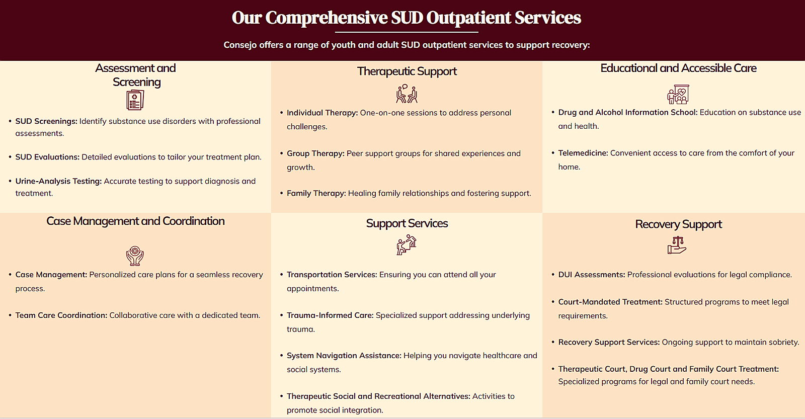 At Consejo, we understand that substance use is often deeply connected to past trauma and life experiences. Our approach centers on meeting clients with empathy and respect, creating a safe space where they feel seen, heard, and supported every step of the way.