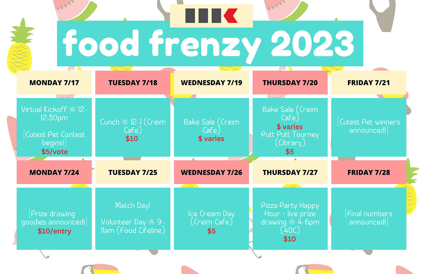 Food Frenzy is back! Join Team WK July 17-28, in our 22nd year of supporting this great cause and making a lasting impact in our community - and having a lot of fun doing it! Special events will include delicious treats, amazing giveaways, and in-person volunteering at Food Lifeline in Seattle. Watch your inbox for more details!